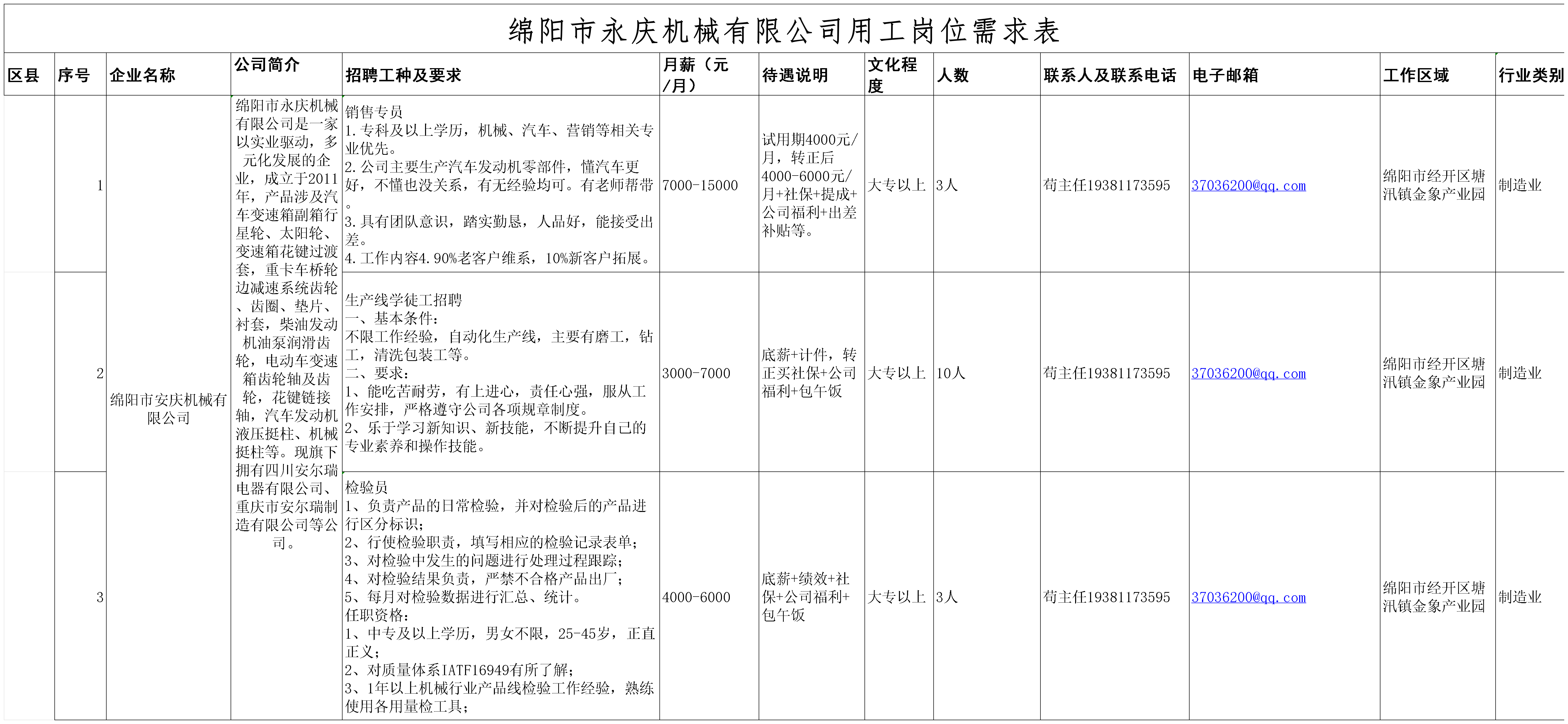 【春季促就业攻坚行动】绵阳市永庆机械有限公司简介
